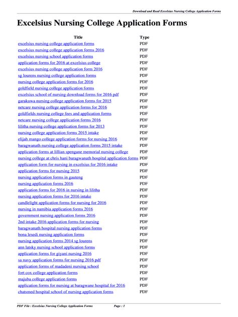 Download Excelsius nursing college application forms mobipocket